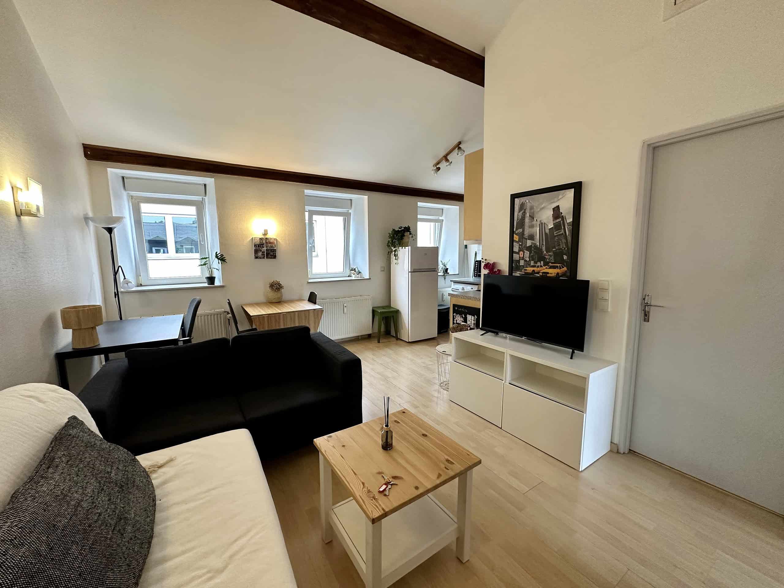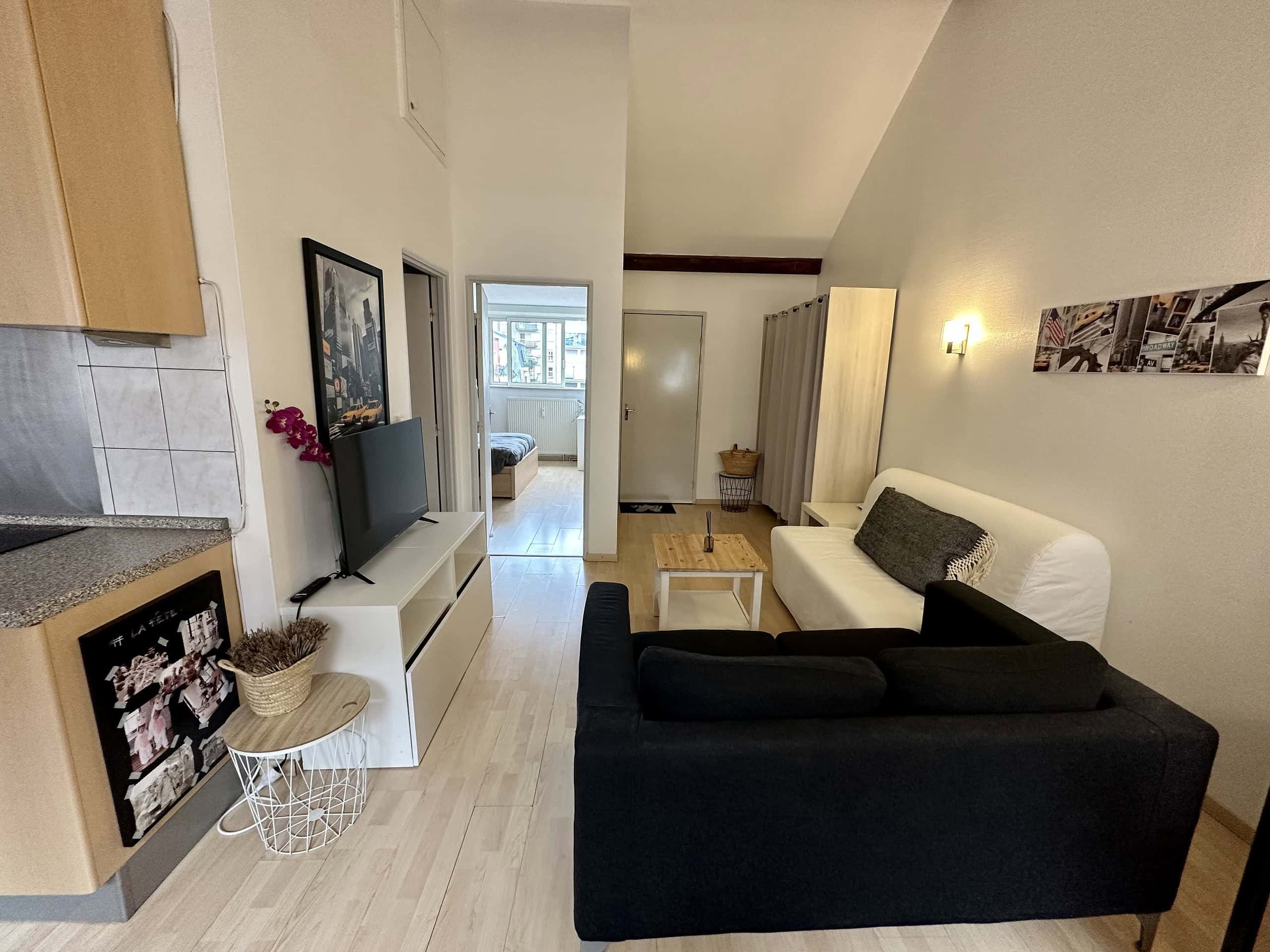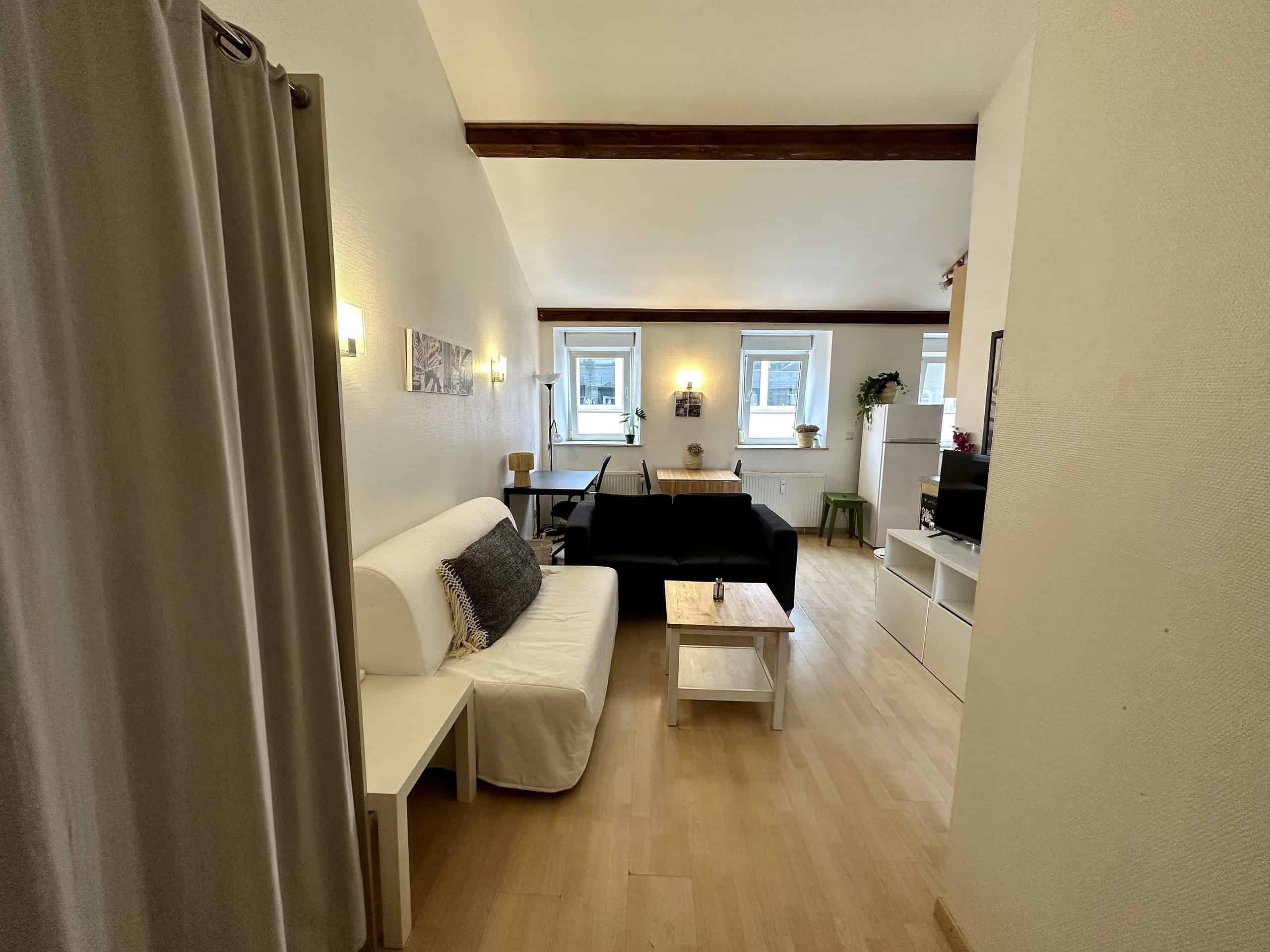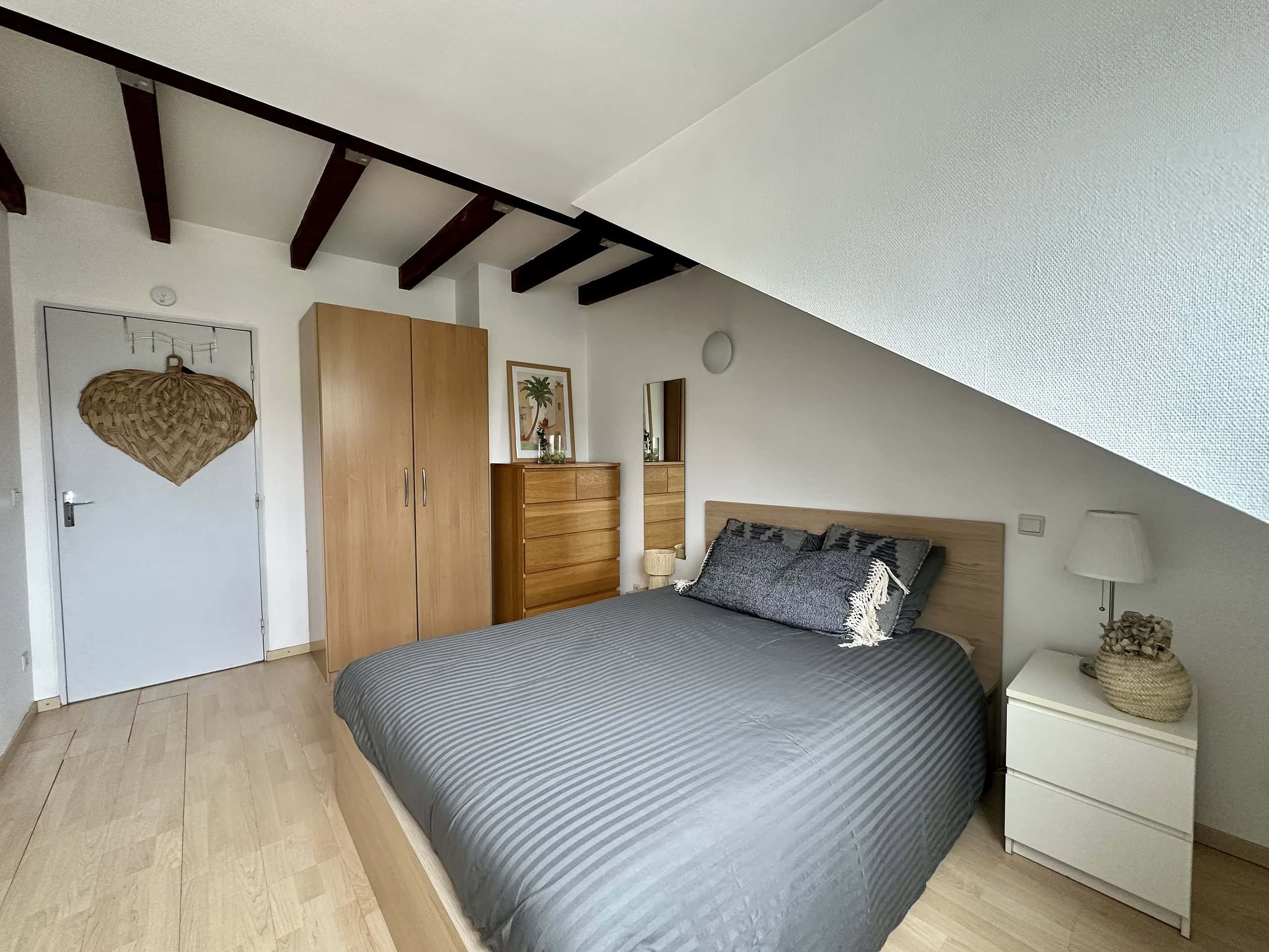 Situé à 50 mètres de la place de Paris et de l’avenue de la liberté, cet appartement meublé de 40 m2 dispose d’une jolie hauteur sous plafond avec poutres apparentes. Il est situé au 3ème et dernier étage sans ascenseur d’une petite résidence bien entretenue.