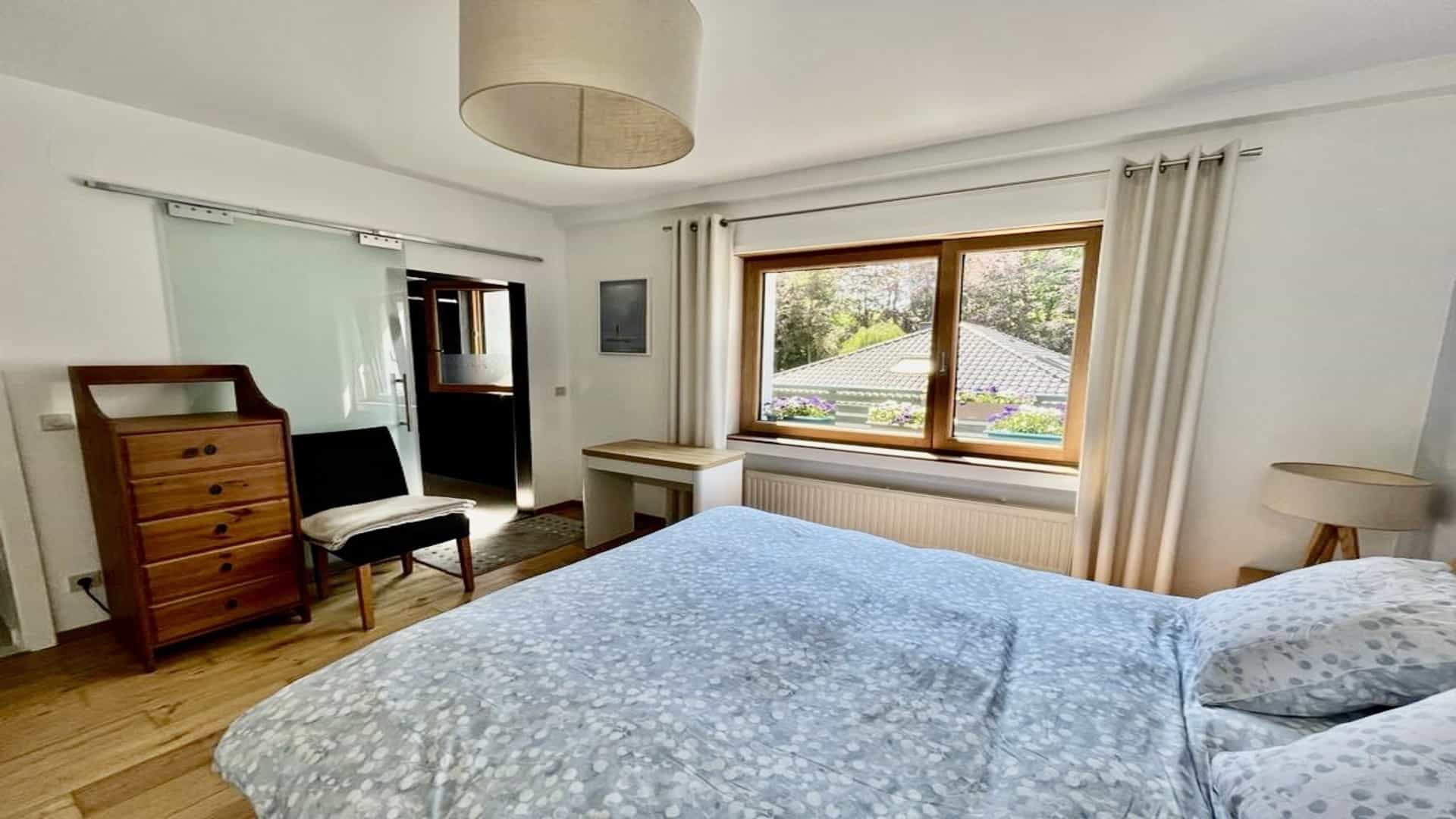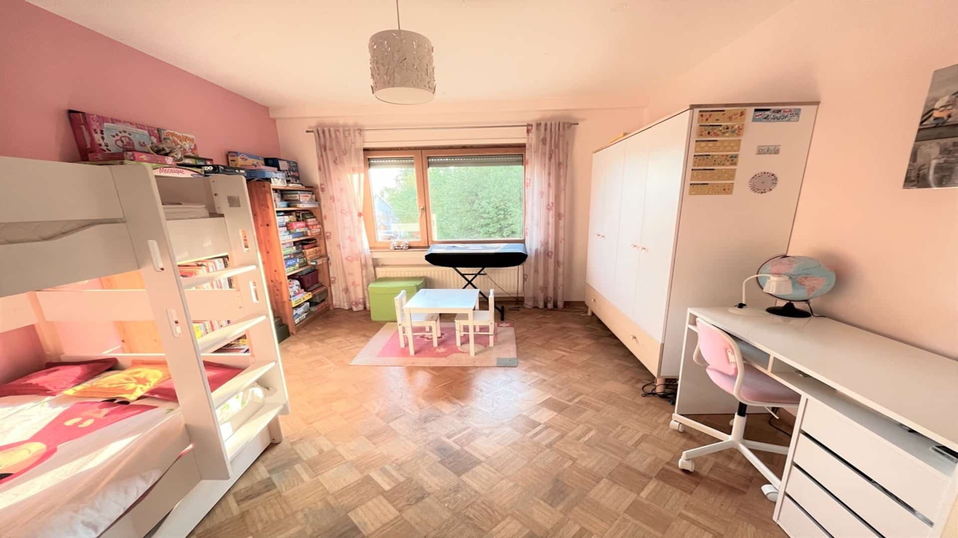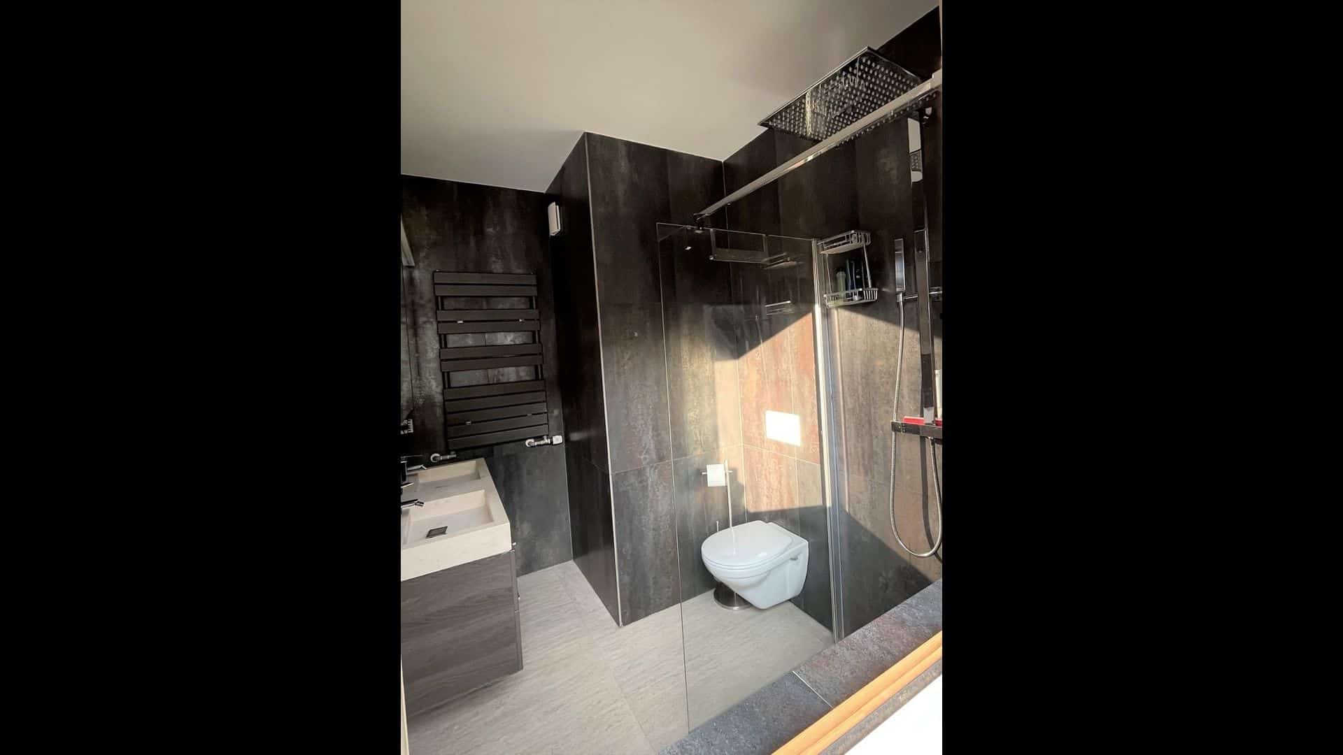 - 3 chambres, dont 2 chambres de 12,7 m2 et 17,7 m2 et une suite parentale avec placards intégrés de 12,5 m2 et sa propre salle de douche et WC de +/- 6 m2.