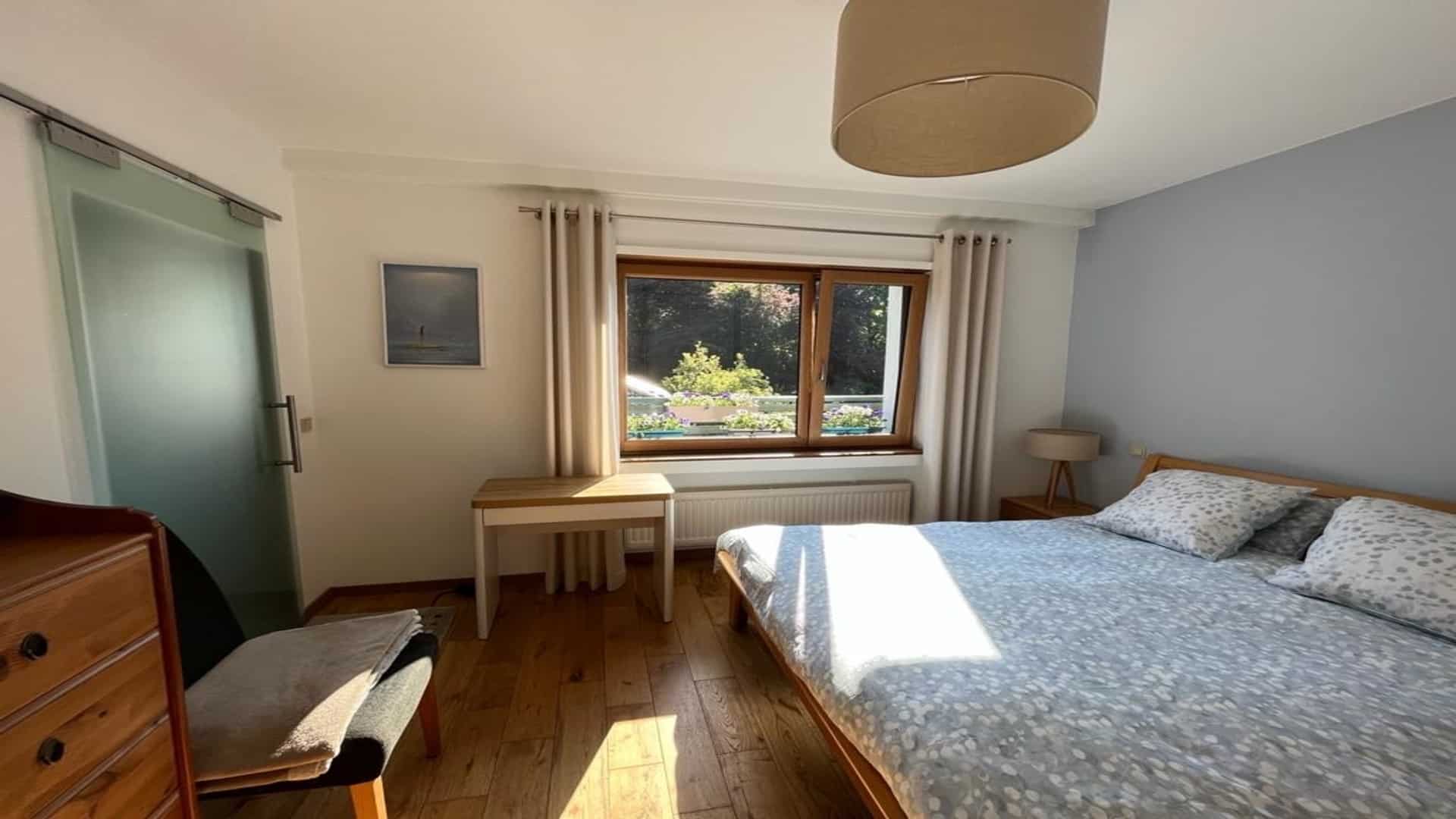 - Le bois au sol dans le salon et les chambres et le ton neutre au mur qui permet de le décorer ensuite très facilement.