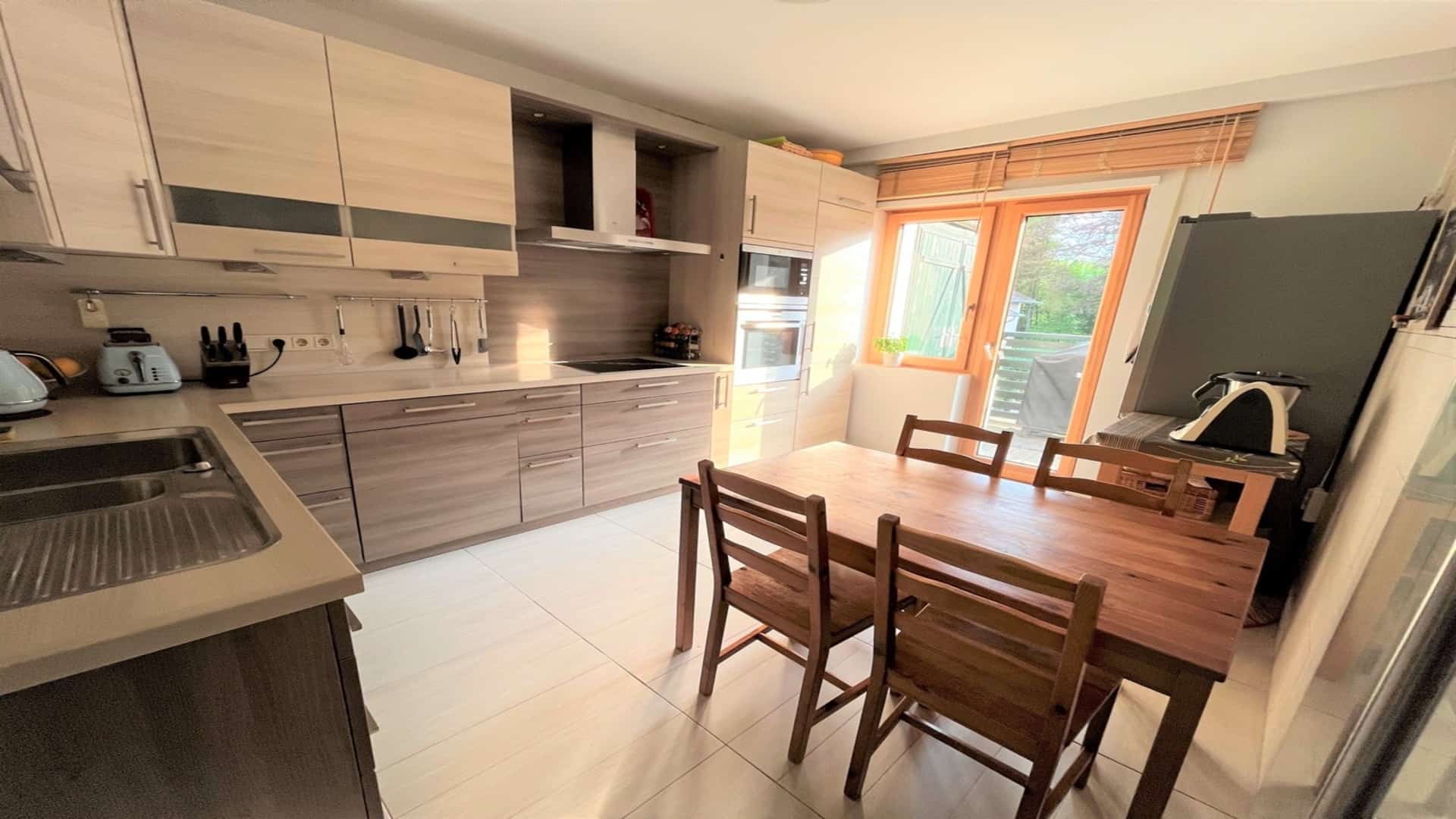Chaudière à gaz, parquet dans l’espace de vie et les chambres, chauffage au sol dans les parties carrelées (entrée, cuisine, salle d’eau), électroménager AEG, lave-vaisselle récent, triple vitrage, buanderie commune, fibre optique et interphone.