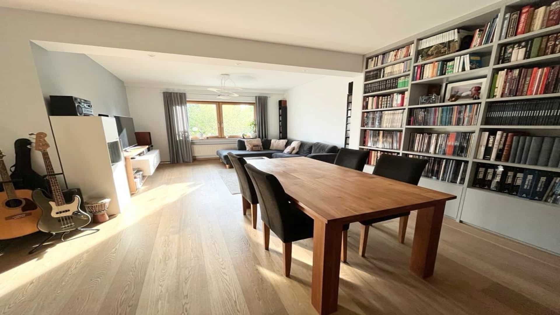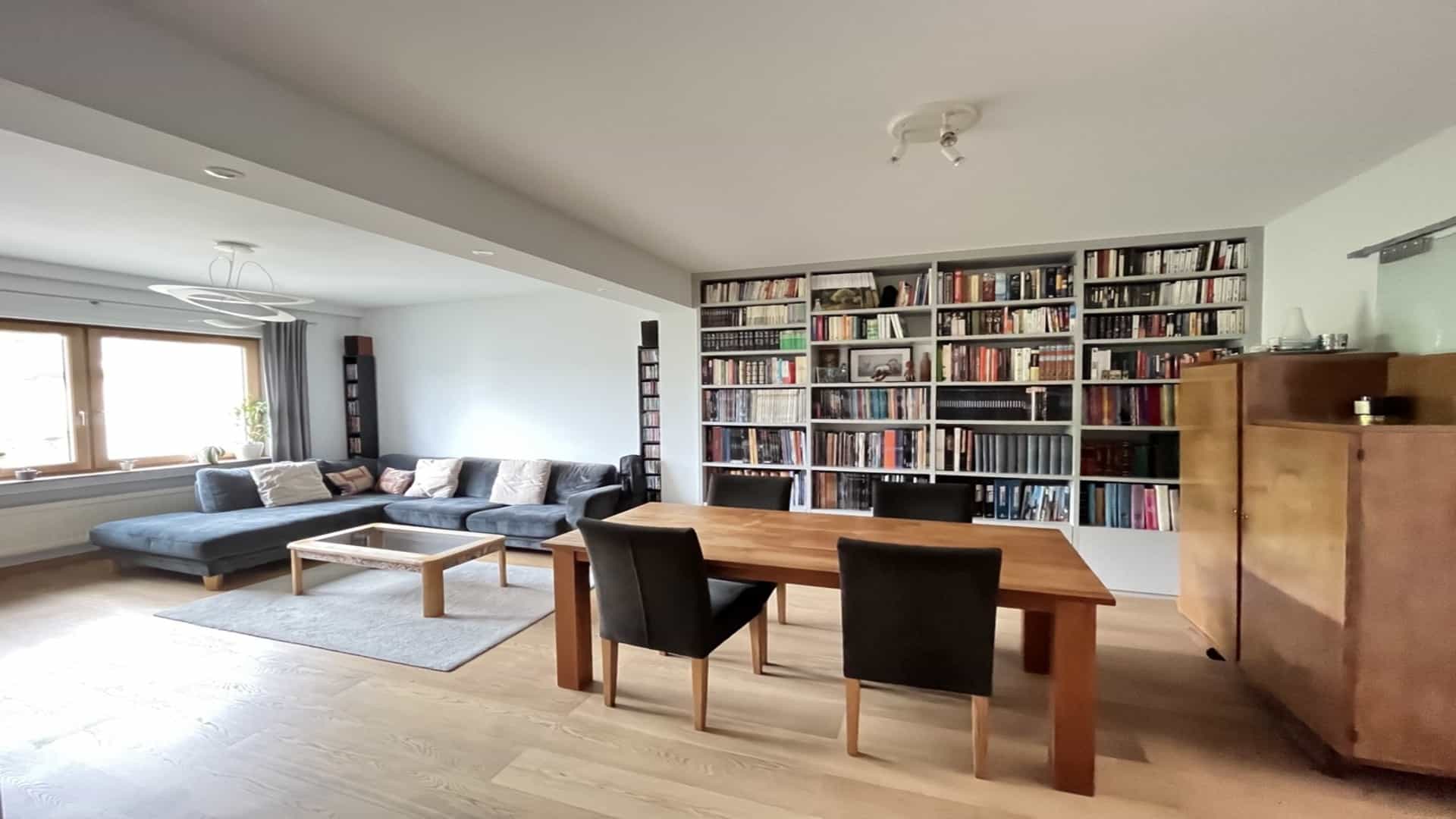 - Un salon/salle à manger de 31m2 avec une grande bibliothèque intégrée.